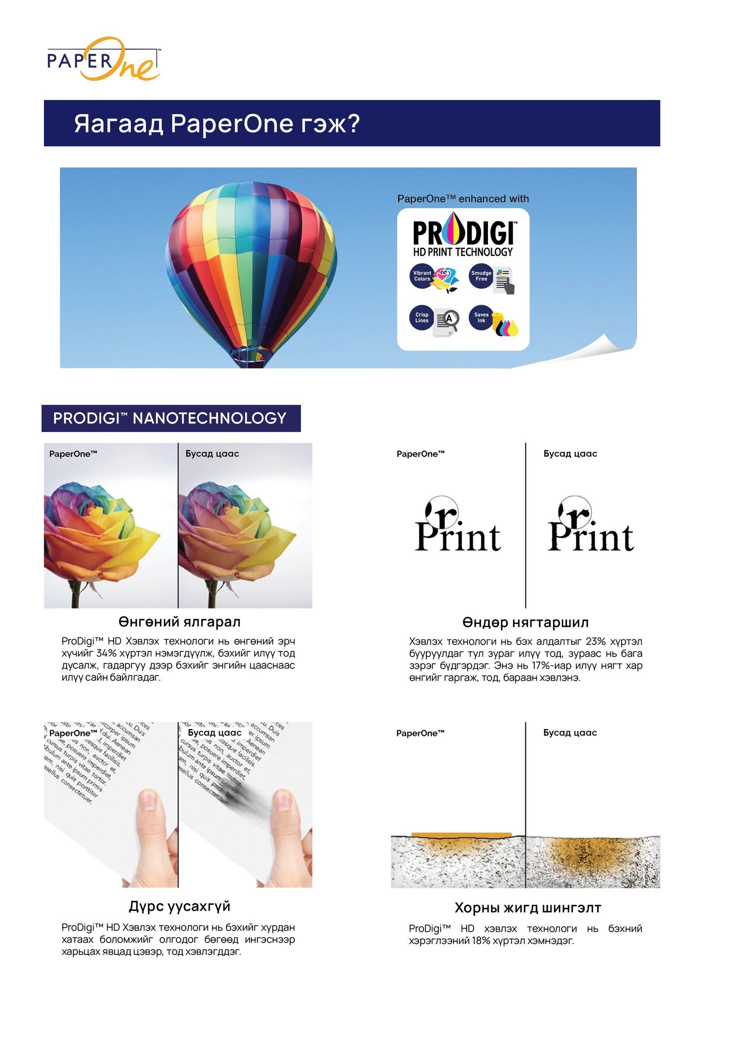 • ProDigiтехнологи:Бэх хурдан хатаж, өнгө илүү тод гарна.